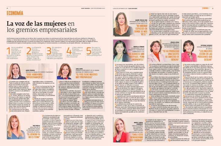 Diario Financiero contactó a sus representantes para hablar sobre los desafíos en torno a la incorporación de mujeres al mundo gremial, el proceso constituyente y el escenario económico.