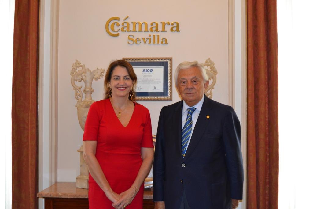 María Teresa Vial junto al presidente de la Cámara de Comercio de Sevilla, Francisco Herrero.
