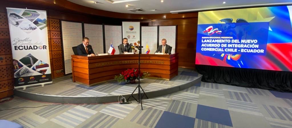 Con un evento binacional con la Cámara de Comercio de Santiago (CCS) como anfitrión en Chile junto con el Ministerio de Producción, Comercio Exterior, Inversiones y Pesca de Ecuador, ProEcuador, la Cámara de Comercio de Quito, Prochile y la Subsecretaría de Relaciones Internacionales, se realizó el lanzamiento del Nuevo Acuerdo de Integración Comercial Chile-Ecuador, ACE N° 75 el cual comenzó a regir el 16 de mayo del año en curso.