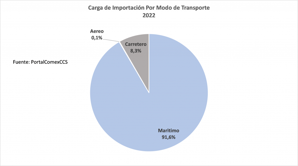 El año pasado, la carga general y frigorizada de importación por vía marítima bordeó los 9 millones de toneladas. Un 35% del tonelaje provino de productos adquiridos en China, 12% desde EEUU, 6% de Brasil y un 5% desde Colombia.