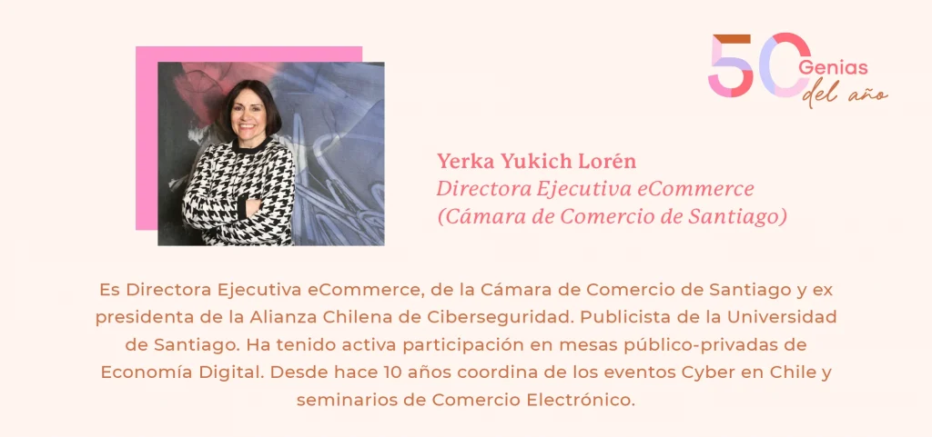 Luego, la categoría “Mujer Inspira”, presentada por Misiones de Rengo, premió a las mujeres que están generando cambios sociales en diversas comunidades con su trabajo. La siguiente categoría, a cargo de Blue Express, “Mujeres en E- Commerce”, destacó y galardonó a diversas mujeres que han cambiado la forma de hacer negocios en línea, entre ellas, a la directora ejecutiva de E-Commerce de la Cámara de Comercio de Santiago, Yerka Yukich.