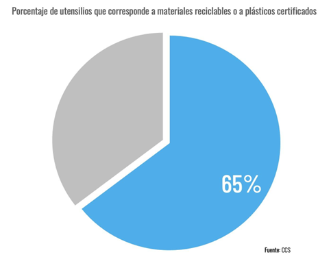 A su vez, de los utensilios de un solo uso que entregan los establecimientos, un 65%, corresponde a materiales reciclables o a plásticos certificados que cumplen con la normativa, lo que muestra el esfuerzo que han realizado las empresas por adecuarse a las nuevas disposiciones. Es importante recordar que originalmente la Ley sólo prohibía la entrega de plásticos de un solo uso no certificados, y que finalmente se modificó el artículo respectivo prohibiendo la entrega de todo material de un solo uso, independiente de su origen y beneficios ambientales, como los biomateriales producidos por una nueva industria sostenible que se ha ido desarrollando en nuestro país.