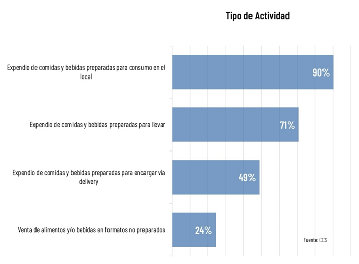 La encuesta fue aplicada a 41 empresas del rubro de servicio de comidas socias de la CCS y de Achiga. En conjunto, estas empresas representan a más de 800 establecimientos de distintos segmentos.