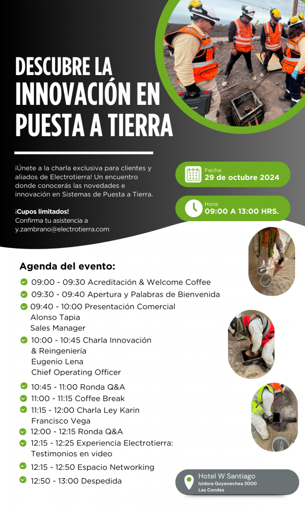 Electrotierra, líder en innovación tecnológica para sistemas de puesta a tierra, anuncia su primer charla especializada exclusiva para ingenieros de la industria minera, construcción, energía y afines.