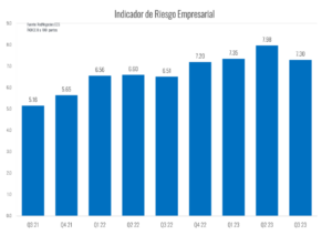 Con ello, el indicador de riesgo empresarial pasó de 7,98 puntos en el trimestre abril junio a 7,30 puntos en el tercer cuarto del año.