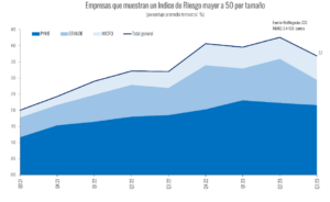 En el segmento de las PYMEs, el índice de riesgo mostró un leve descenso de 0,2 puntos respecto del segundo trimestre. Este resultado se deriva de una caída de medio punto en el indicador laboral junto a un aumento de 0,1 punto en el riesgo de morosidad, con lo que el indicador se sitió en 7,21 puntos en el tercer trimestre.