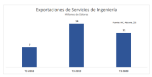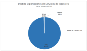 Asimismo, se observó que, en el tercer trimestre del presente año, el 100% de las exportaciones se concentraron en la materializaron de proyectos relacionados con los servicios de ingeniería para instalaciones de la minería extractiva del cobre.
