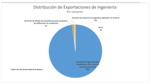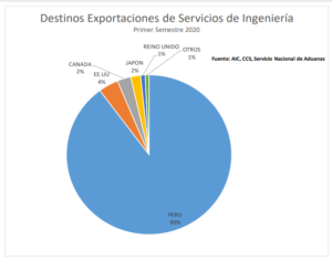 Pese a su fuerte caída, Perú sigue siendo por lejos el principal destino de las exportaciones de servicios de ingeniería chilena, con una participación del 90% sobre el total, seguido bastante más atrás por Estados Unidos, con un 4%.