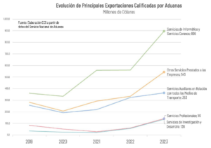 - Servicios calificados como exportación por el Servicio Nacional de Aduanas se duplicaron entre 2019 y 2023