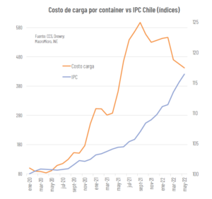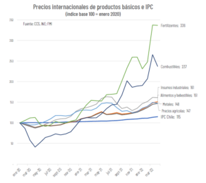 No solo los costos del transporte han aumentado, toda la cadena de precios de producción sufre presiones al alza. El aumento del precio y escasez de materias primas, el alza de todo tipo de insumos y de costos laborales, la interrupción de los procesos productivos, han hecho subir el precio de los bienes que Chile importa.