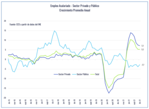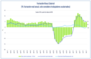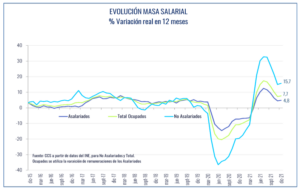 Para el año 2021, en tanto, el cierre marcó un crecimiento anual del 5,6% en los salarios nominales y del 1,1% en los reales.