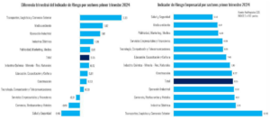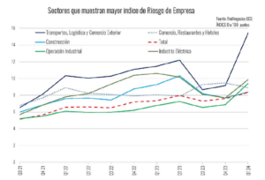 Al margen de las variaciones, los sectores que mostraron los mayores niveles de riesgo en la primera parte del año fueron Transportes, Logística y Comercio Exterior (12,48 puntos); y el sector Eléctrico, con un índice de 9,86 puntos.