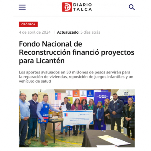 Fondo Nacional de Reconstrucción financió proyectos para Licantén (04/04/2024)