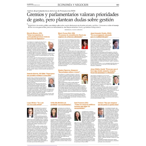Gremios y parlamentarios valoran prioridades de gasto, pero plantean dudas sobre gestión (29/09/2023)