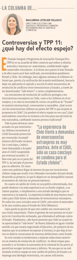 La directora ejecutiva del CAM Santiago y presidenta de la Comisión Interamericana de Arbitraje Comercial, destaca que en el tratado "se modernizan y mejoran redacciones anteriores en materia de resolución de conflictos".
